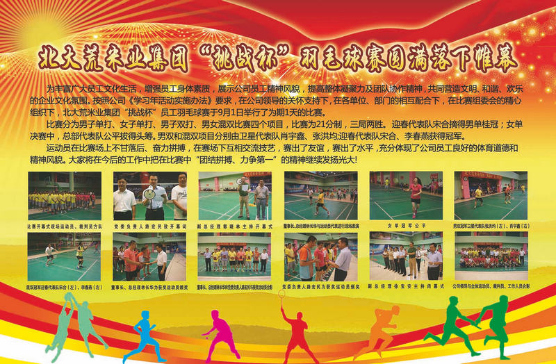 北大荒米業(yè)集團(tuán)“挑戰(zhàn)杯”羽毛球賽展板