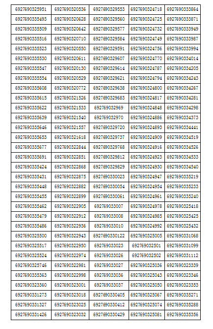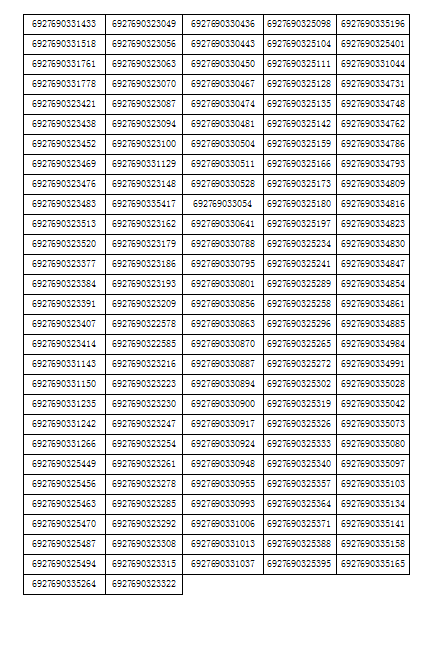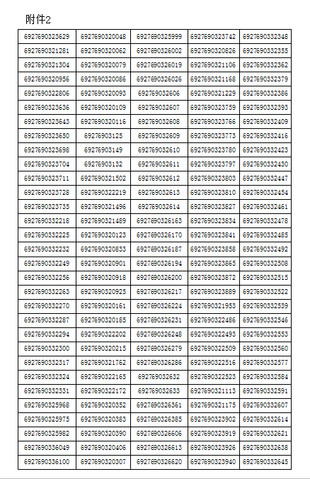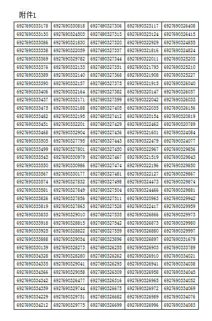 因公司發(fā)展需要,部分產(chǎn)品包裝已經(jīng)退出市場,不再進(jìn)行銷售。附件1中條碼,公司已于2023年7月前停用,相對應(yīng)產(chǎn)品包裝同時退出市場;附件2中條碼,公司已于2024年4月前停用,相對應(yīng)產(chǎn)品包裝同時退出市場。現(xiàn)對公司停用條碼進(jìn)行公示,如在市場上發(fā)現(xiàn)以下產(chǎn)品條碼及包裝,則可視為假冒產(chǎn)品處理,黑龍江省北大荒米業(yè)集團(tuán)有限公司將追究相應(yīng)的責(zé)任。