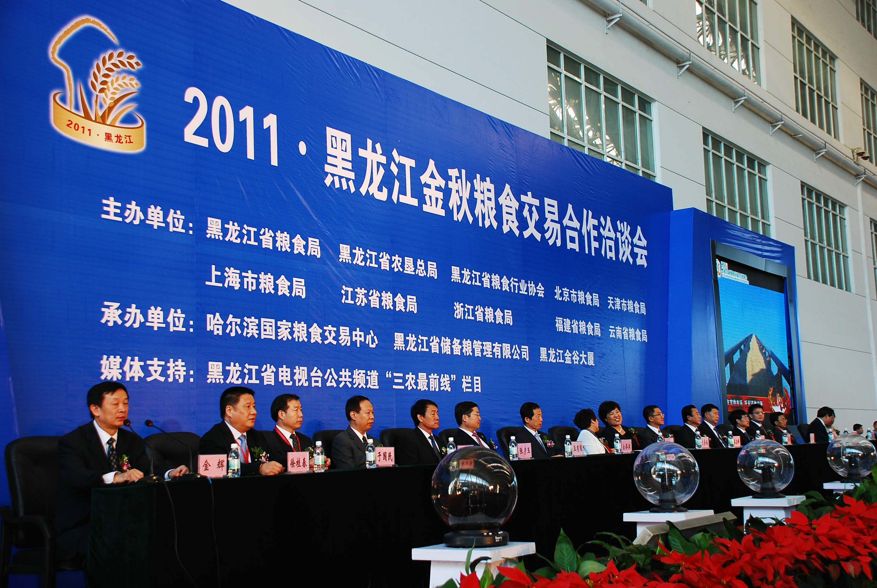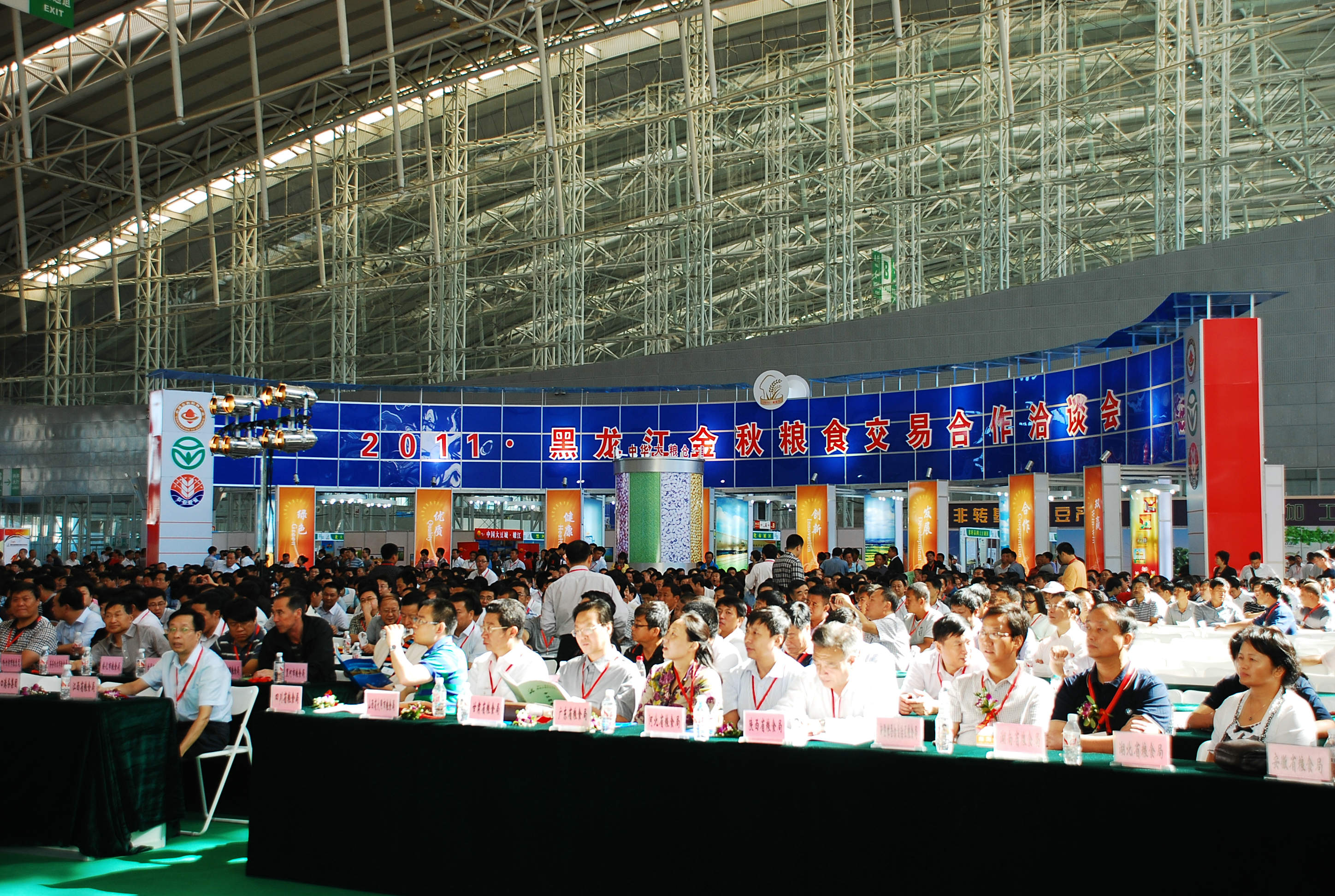 9月3日,2011年黑龍江省金秋糧食交易會在哈爾濱會展中心召開,圖為會議現(xiàn)場